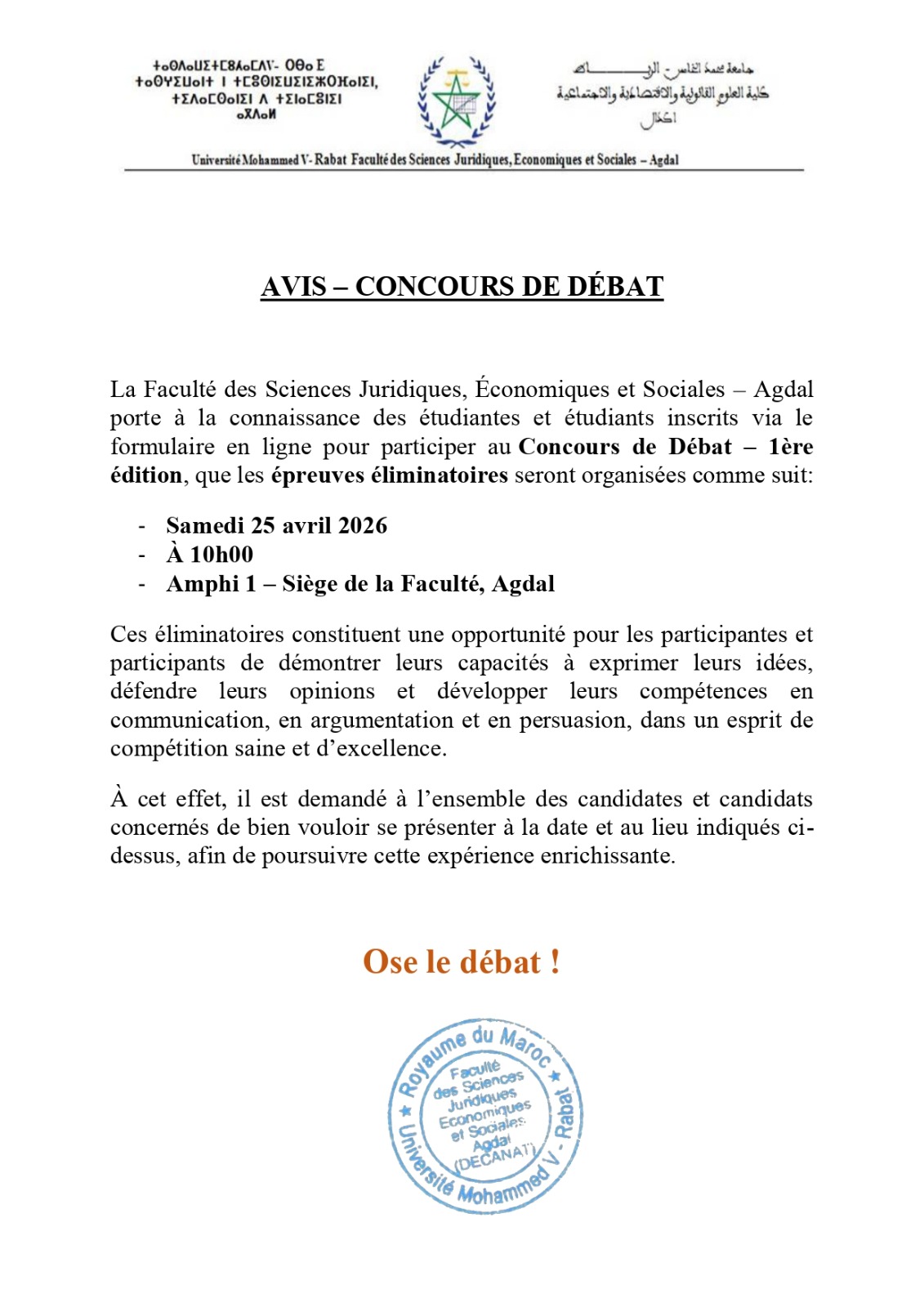 AVIS – CONCOURS DE DÉBAT